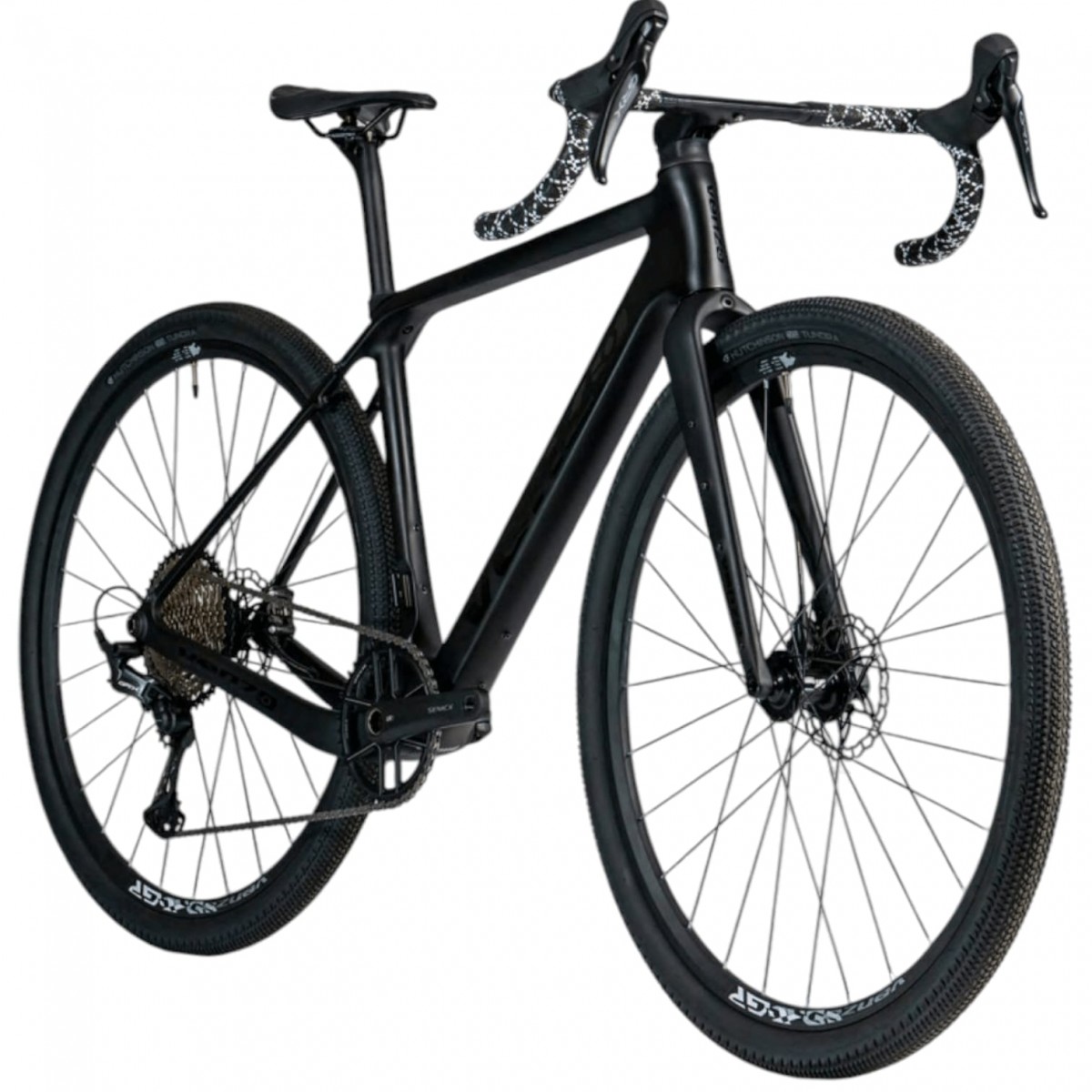 En este caso nos presenta su modelo de bicicleta gravel Hecate con cuadro monocasco de carbono, disponibles en talles XS, S, M, L y XL, con cableado interno frontal (ingresa por el frente del manubrio y pasa por el stem), corte de vainas inferior, frente conificado, horquilla de Carbono de hombros caídos, y equipamiento de 1 x 12 velocidades Shimano GRX. Plato palanca Senicx de 170 mm con 42 dientes, Cambio Shimano RX-822 shadow SGS de 12 velocidades, piñón de 12 coronas Shimano con 11-46 dts, cadena Shimano M6100 de 12 veloc, manijas de frenos más cambios Shimano RX-610 de 12 velocidades. Caliper de freno hidráulico Shimano R400, disco de freno delantero de 160 mm y 6 tornillos, disco de freno trasero de 140 mm y 6 tornillos, y forma con ahead integrados, una pieza de carbono. Porta silla de carbono, asiento Venzo VAX anticompresión. Ruedas B1Team gravel de aluminio: llanta de aluminio con 28 agujeros, alto 21.4 mm, ancho interno 23 mm. Mazas B1Team con rulemanes. Eje pasante 12 mm x 100 mm delantero y 12 mm x 142 mm trasero. Cubiertas Hutchinson 700x45 tubeless.