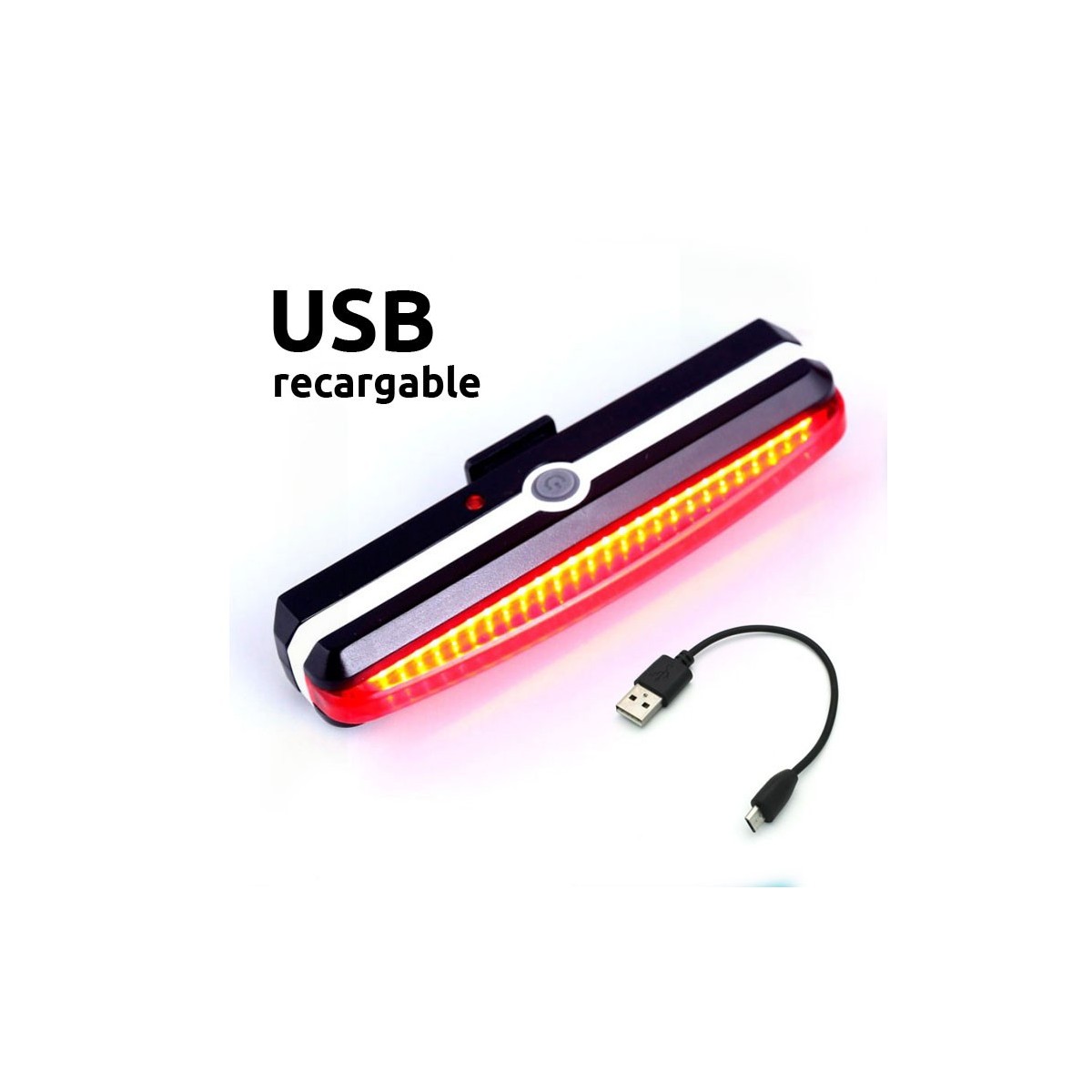 Este modelo de luz recargable por USB es una de las más brillantes, además con una longitud extra, que permite ser visible a distancia. Distintos niveles de destello y ajuste en el ángulo de la lámpara, te serán más que útiles en tu camino en bici.