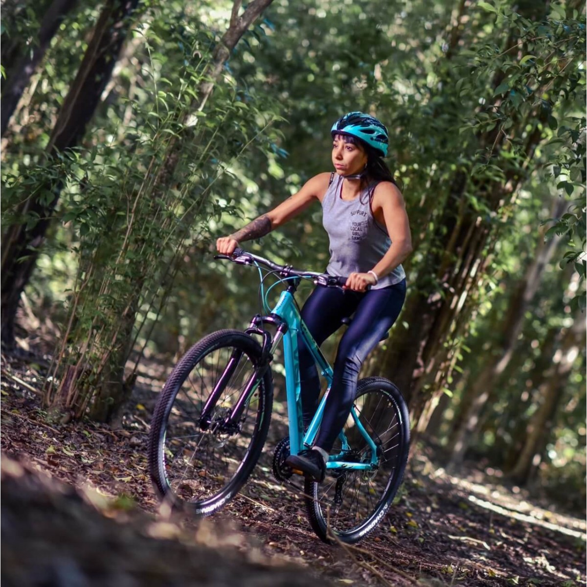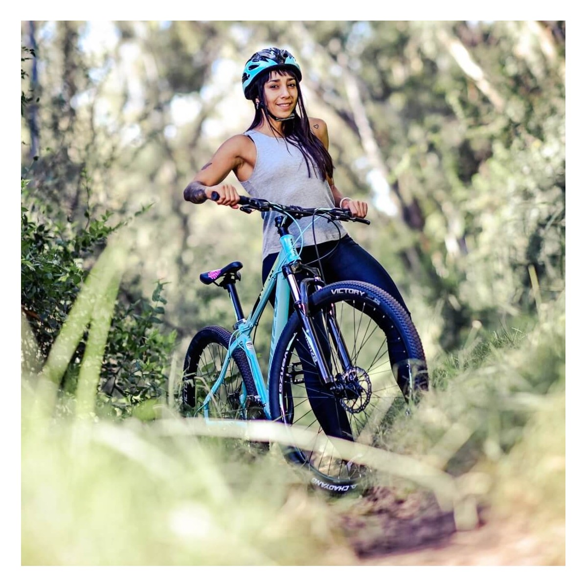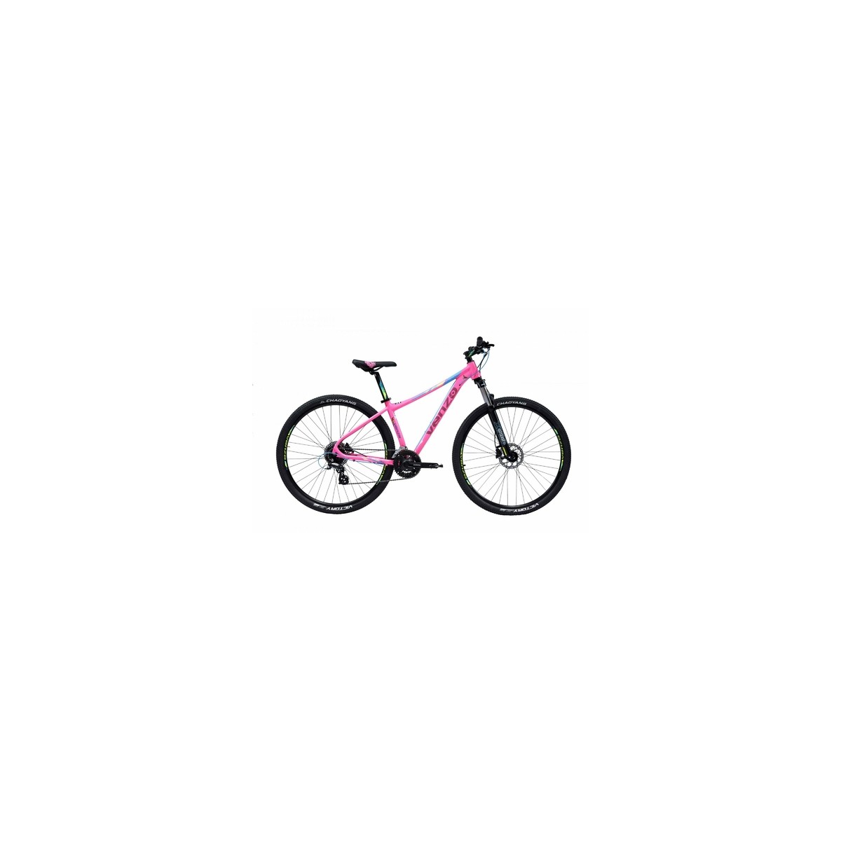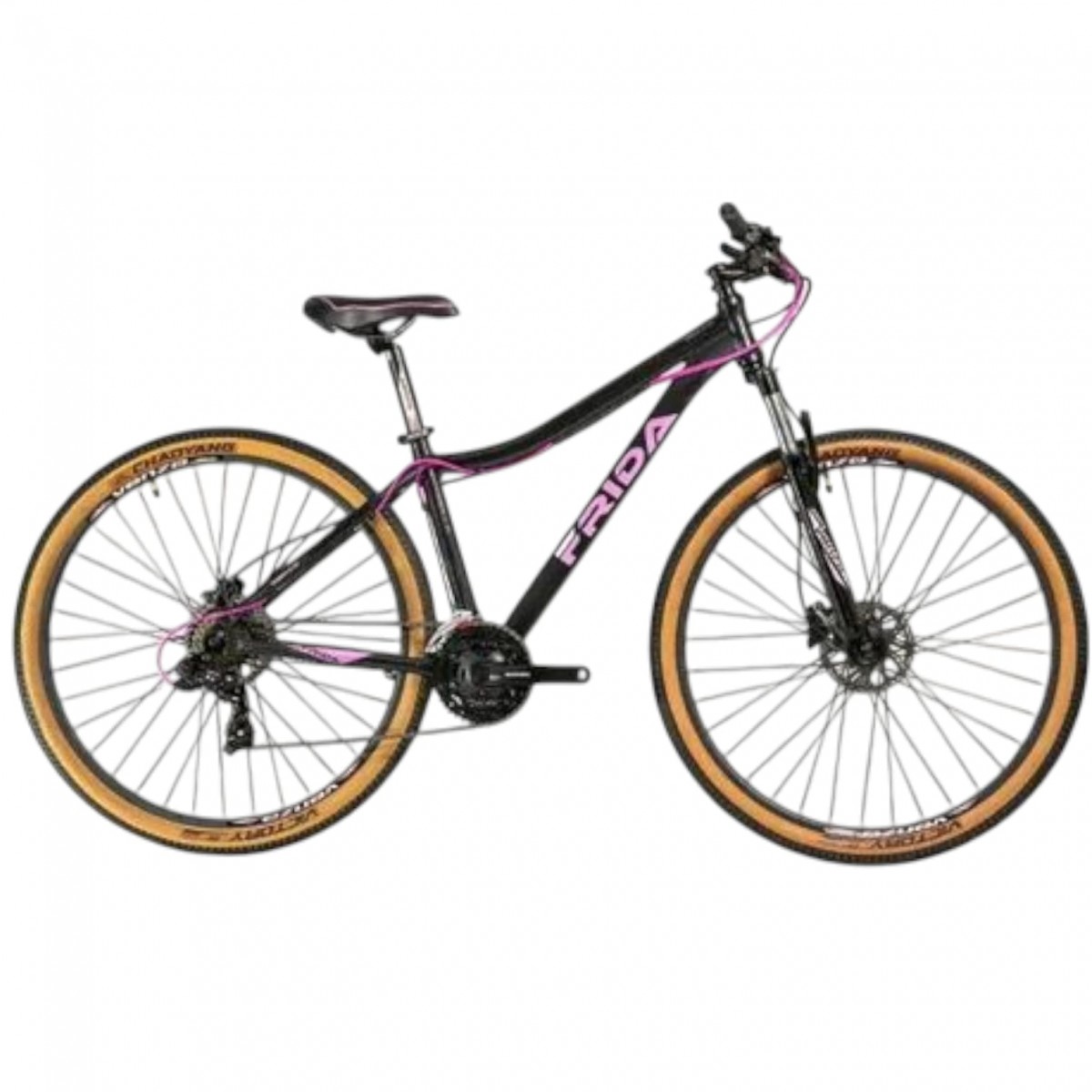 Este modelo se llama Venzo Frida Belle, es rodado 29, y su cuadro tiene una curvatura pronunciada en el caño superior ideal para personas de baja estatura y para facilitar bajarse y subirse cómodamente. Equipada con 21 velocidades Shimano TY300, frenos a disco hidráulicos, shifter Shimano y amortiguación con bloqueo a la botella. Los cuadros vienen en talle XS (15), S (16.5) y M (18) en negro combinados con colores: con verde menta o con fucsia; o en color base rosa combinado con: lila o blanco.