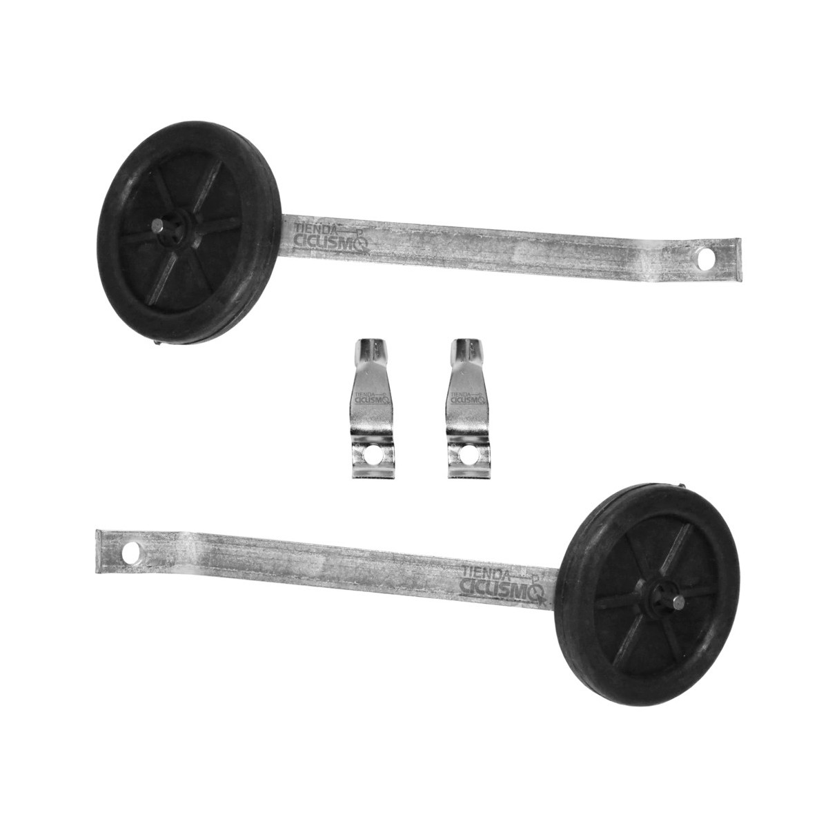 Te ofrecemos un juego de rueditas estabilizadoras muy resistentes, por su construcción sobre planchuela de acero, para rodado 20. Vienen compuestas de las ruedas, los extensores, los soportes para que no se giren y 4 tornillos con sus tuercas.
