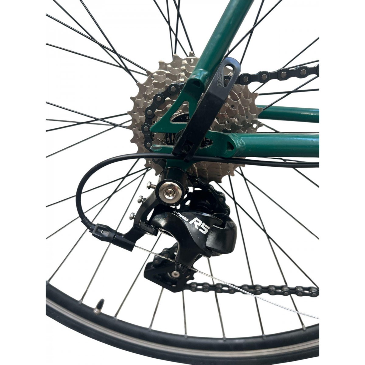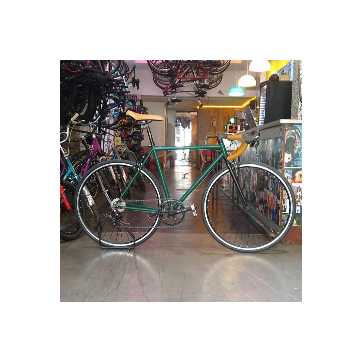 En "la cocina" de Bici Urbana, armamos todo tipo de bicis personalizadas. En este caso, te presentamos una bici rutera biplato de 9 velocidades modelo Tempo, con equipo Ltwoo R5, frenos de ruta , mazas con cierre rápido (ambas ruedas), cubiertas 700x23, cuadro FAD de acero 1010 ultraliviano y resistente (peso total de la bici 11 kg), Monoplato 52T, pata de cambios Ltwoo R5, piñón de 9 velocidades Ltwoo R5, manubrio drop con cinta/grip y ergos Ltwoo R5 para 18 velocidades. Le tenemos prearmada en talle 54 con ese color que es un verde oscuro. Si querés la podeos armar en otro talle y color, pedinos la tuya!