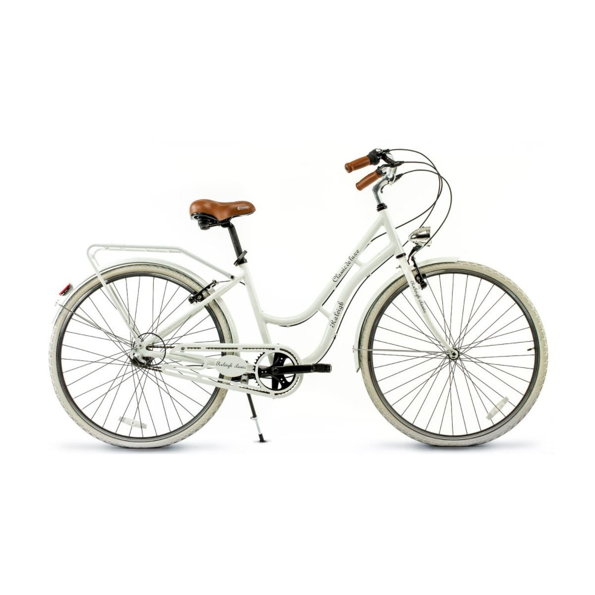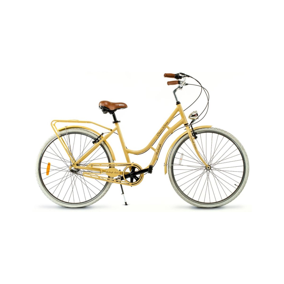 En este caso nos ofrece su bicicleta Raleigh Classic dama, con cuadro de aluminio ultraliviano y 3 velocidades Shimano Nexus (dentro de la maza) rodado 28 y detalles como asiento ancho sintético cuero y puños en misma calidad. Como detalle trae una luz delantera emulando las de dínamo antiguas. Disponibles en tres colores: blanco, beige o negro, elegí el color y consultanos su disponibilidad.